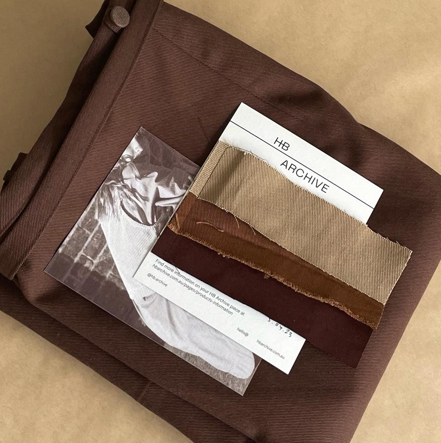 Garments created may have additional or alternative garment details, and are adapted from pieces within the Archive. Get in touch to find out more about what's available: hello@hbarchive.com.au