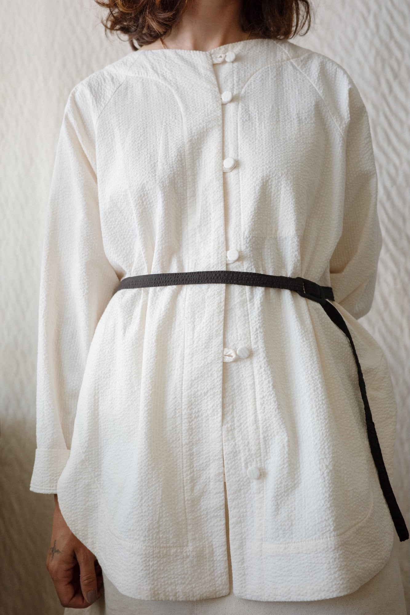 A simple belt and double bar buckle made of Archive Cotton Seersucker in Cream or Black.
