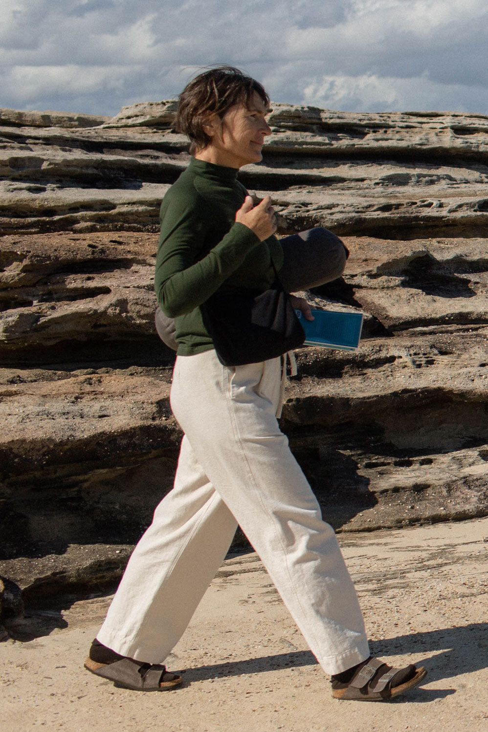 The Harvey Pant features fly front closure, tie at the waist band for adjustability, front pleats, and scooped pockets. These pants can be worn at the waist or lower on the hip depending on desired fit. A versatile and relaxed piece to wear every day.