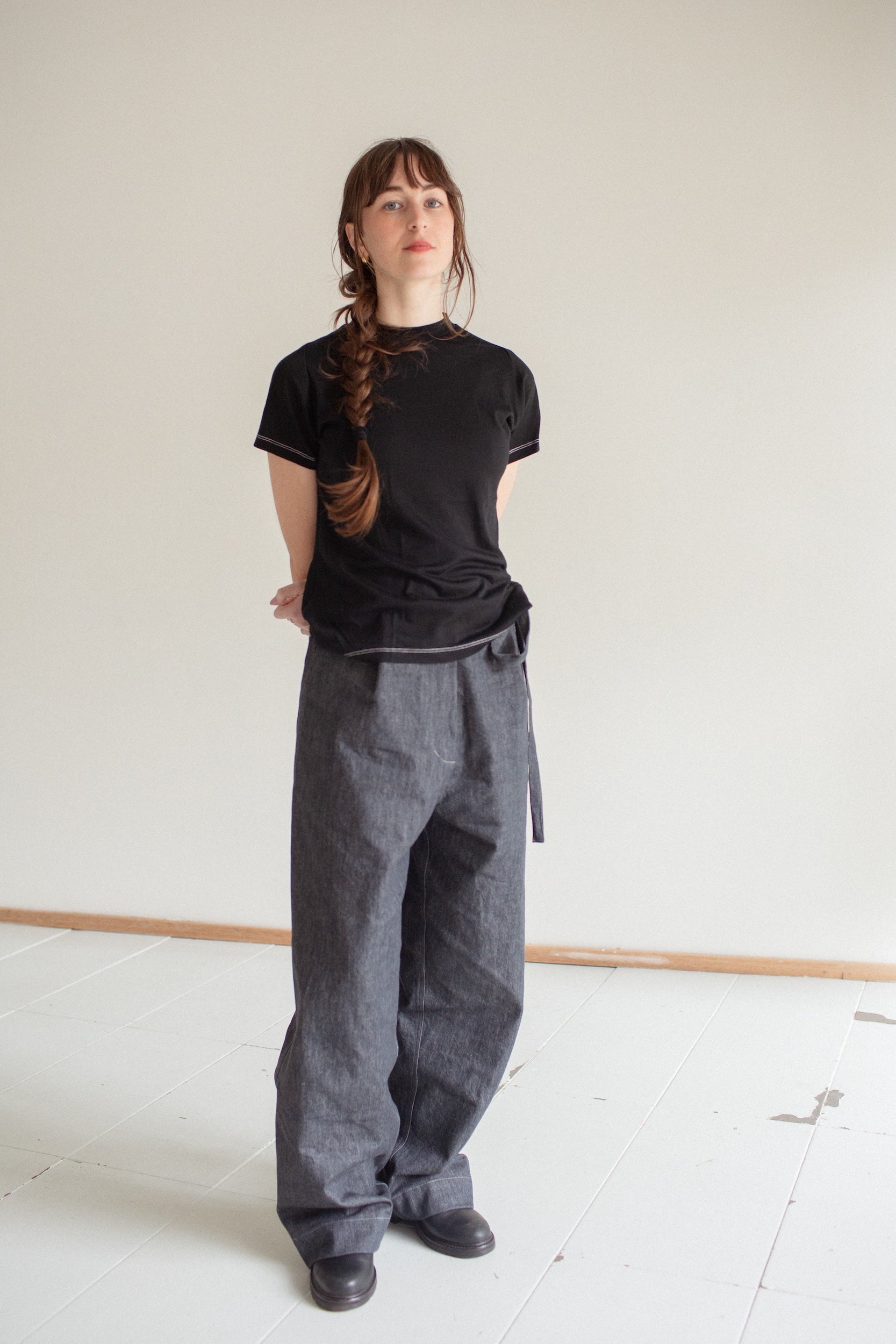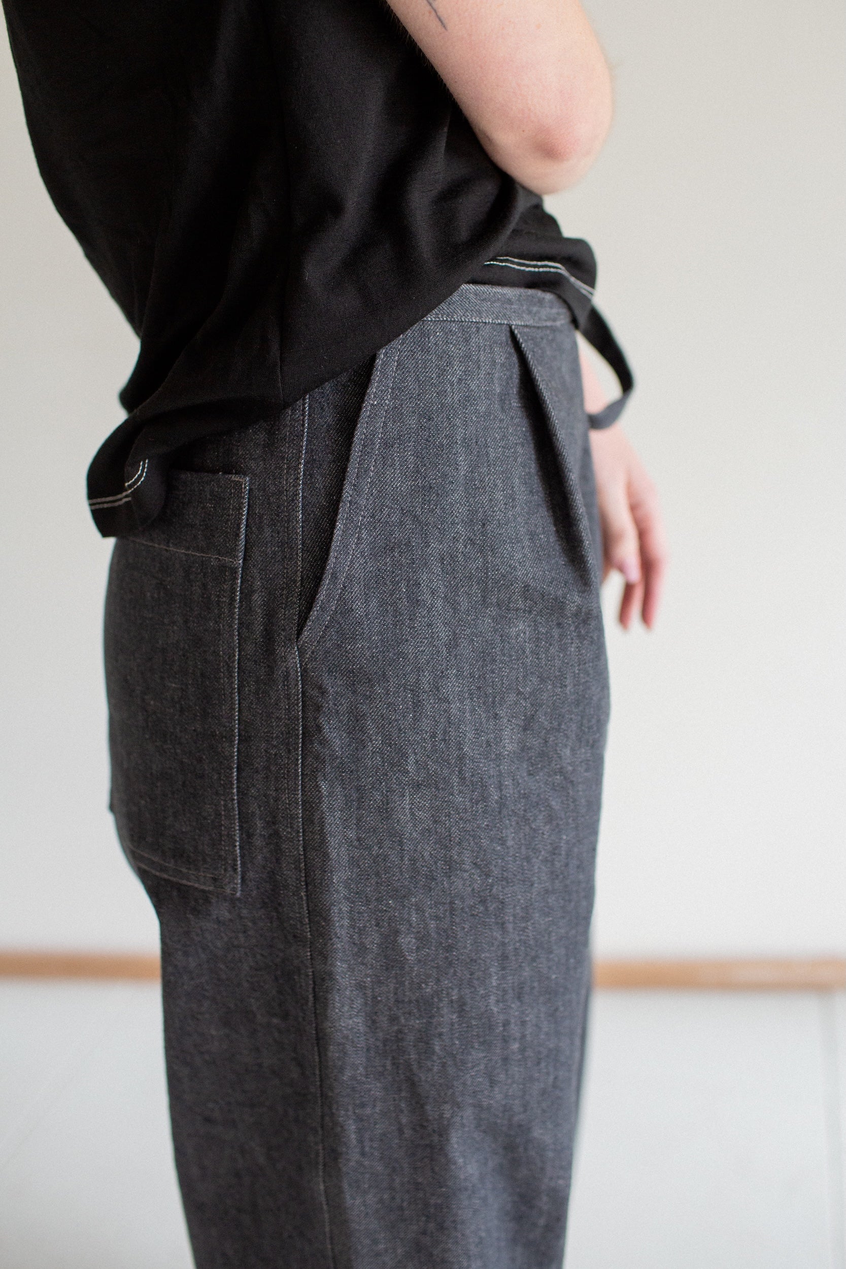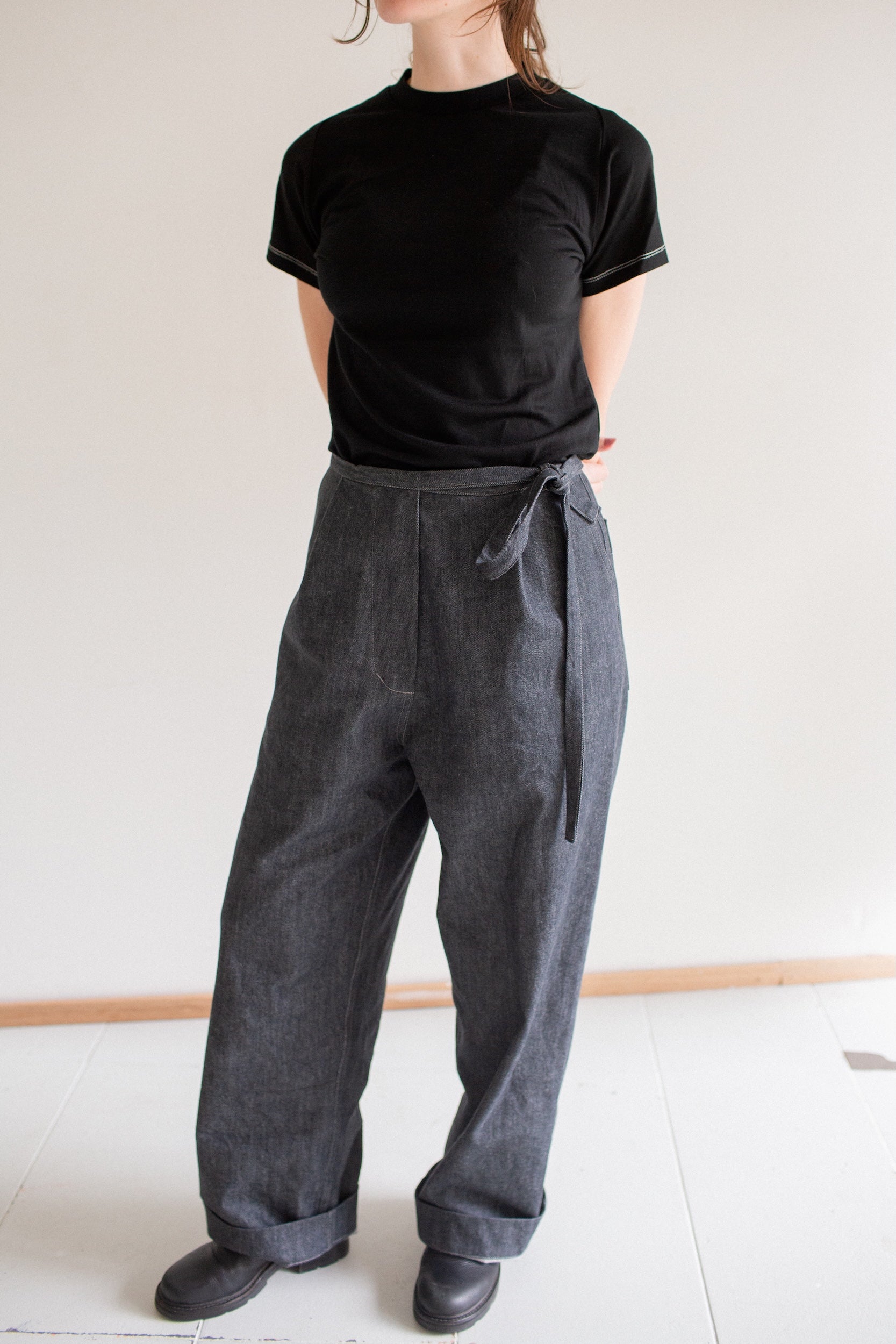 The Harvey's feature a fly front closure, tie at the waist band for adjustability, front pleats, and scooped front pockets. These pants can be worn at the waist or lower on the hip depending on desired fit. A versatile and relaxed piece to wear every day.