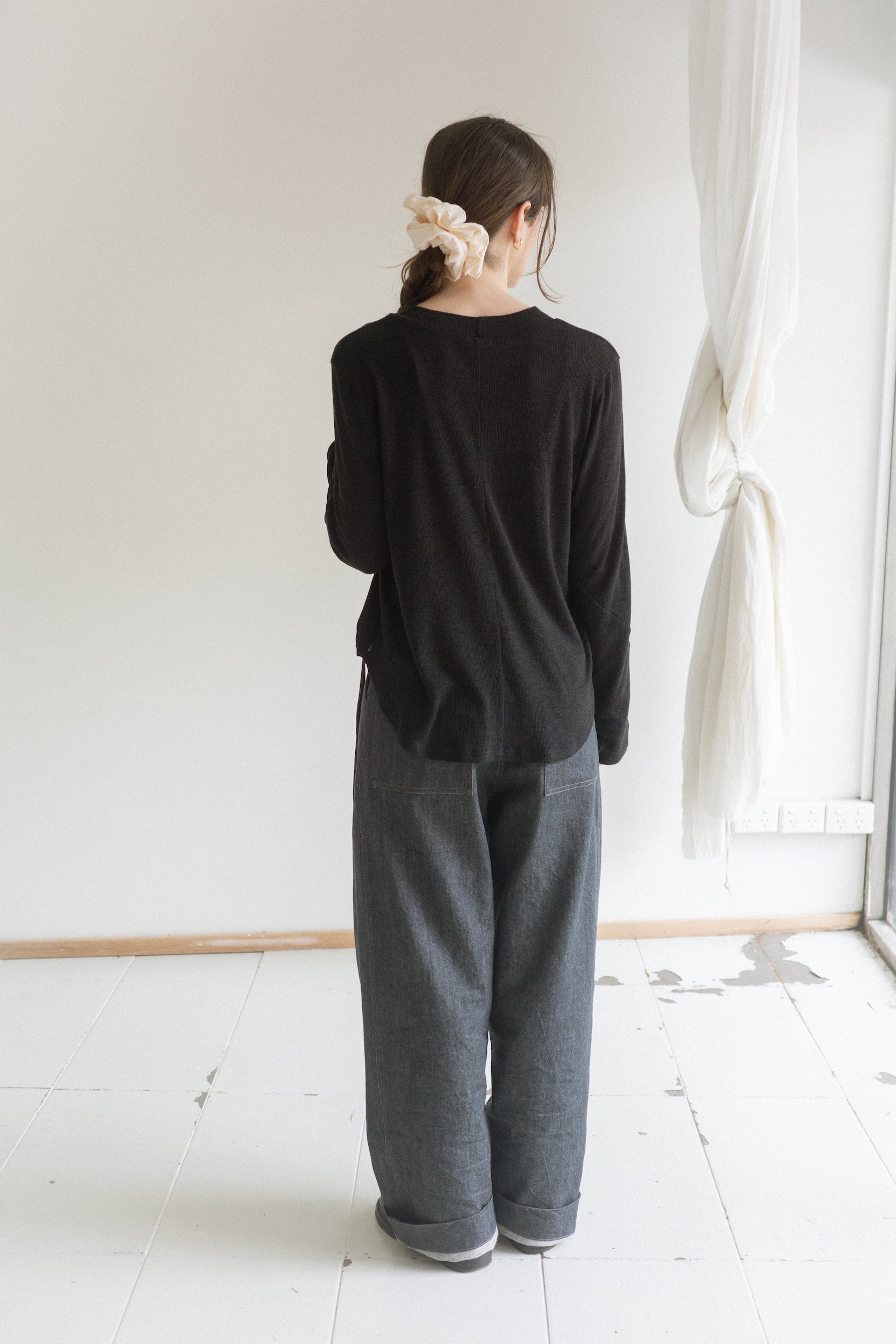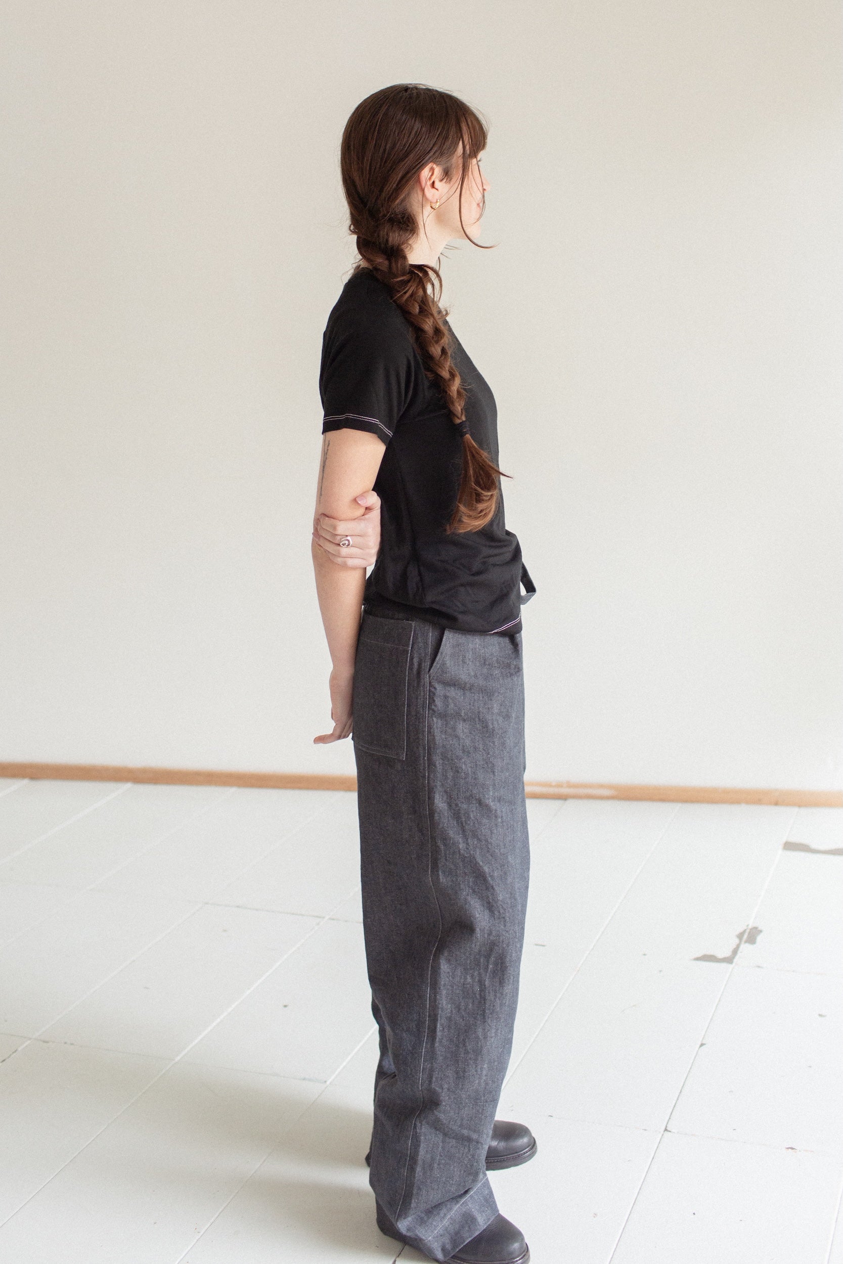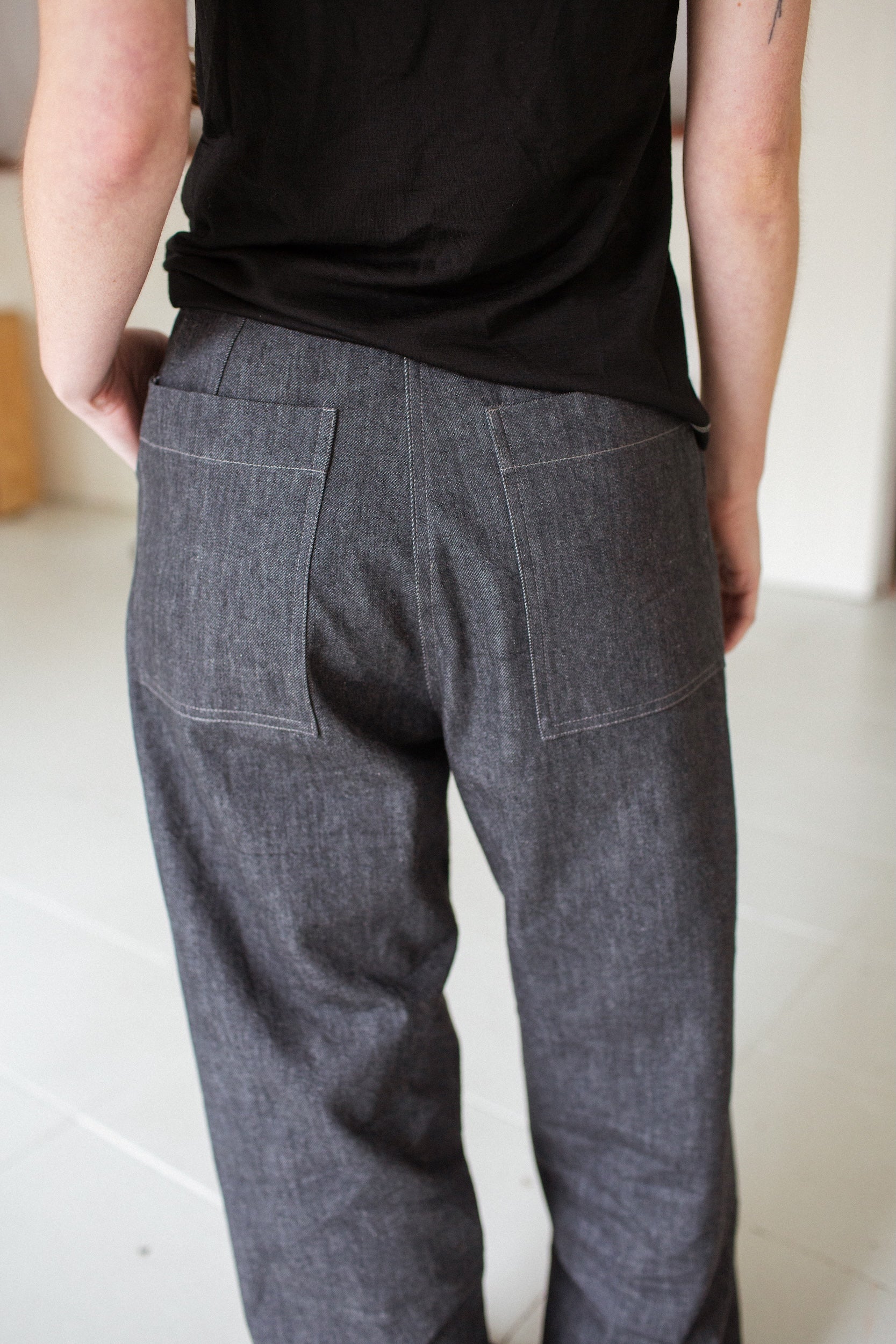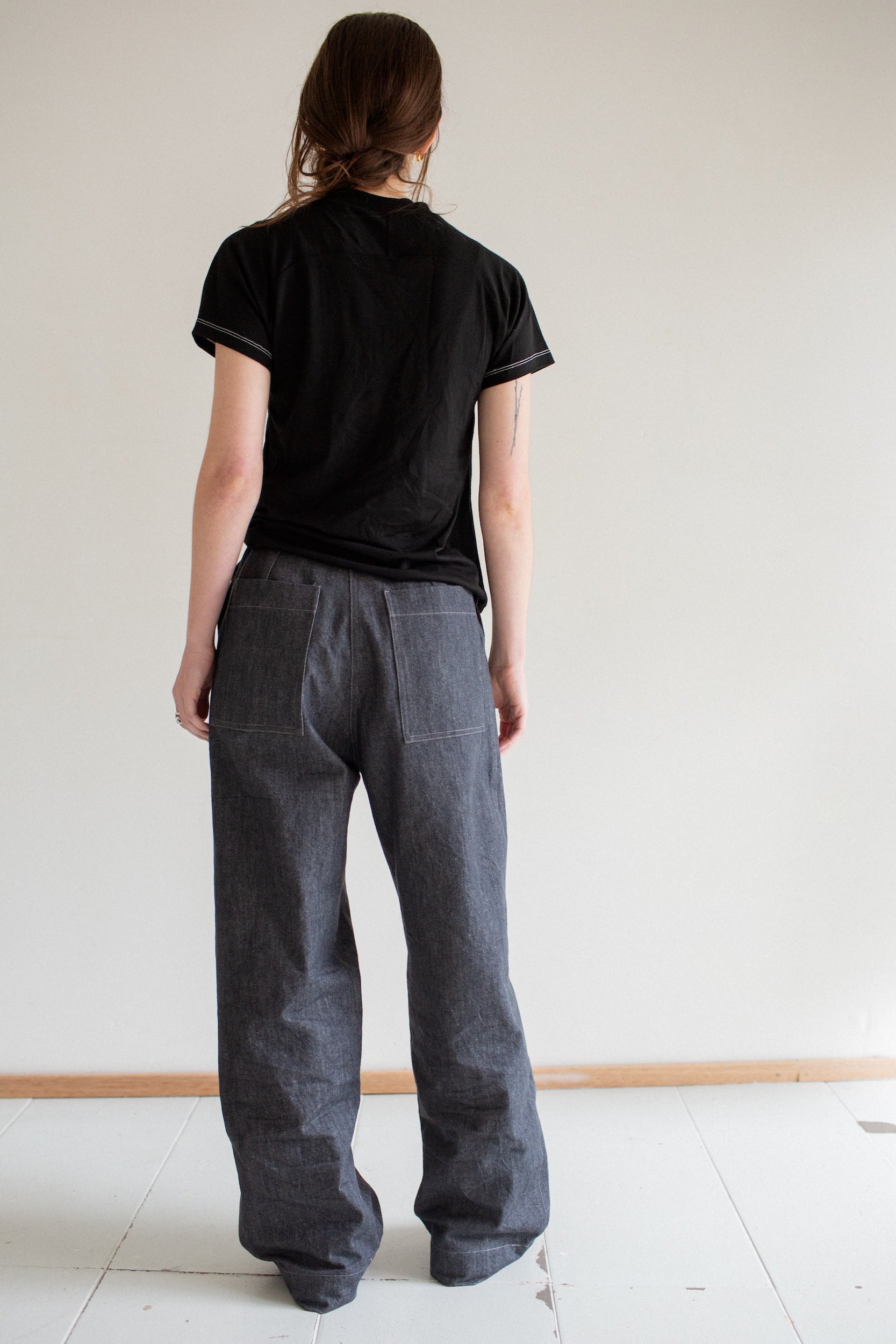 The Harvey's feature a fly front closure, tie at the waist band for adjustability, front pleats, and scooped front pockets. These pants can be worn at the waist or lower on the hip depending on desired fit. A versatile and relaxed piece to wear every day.