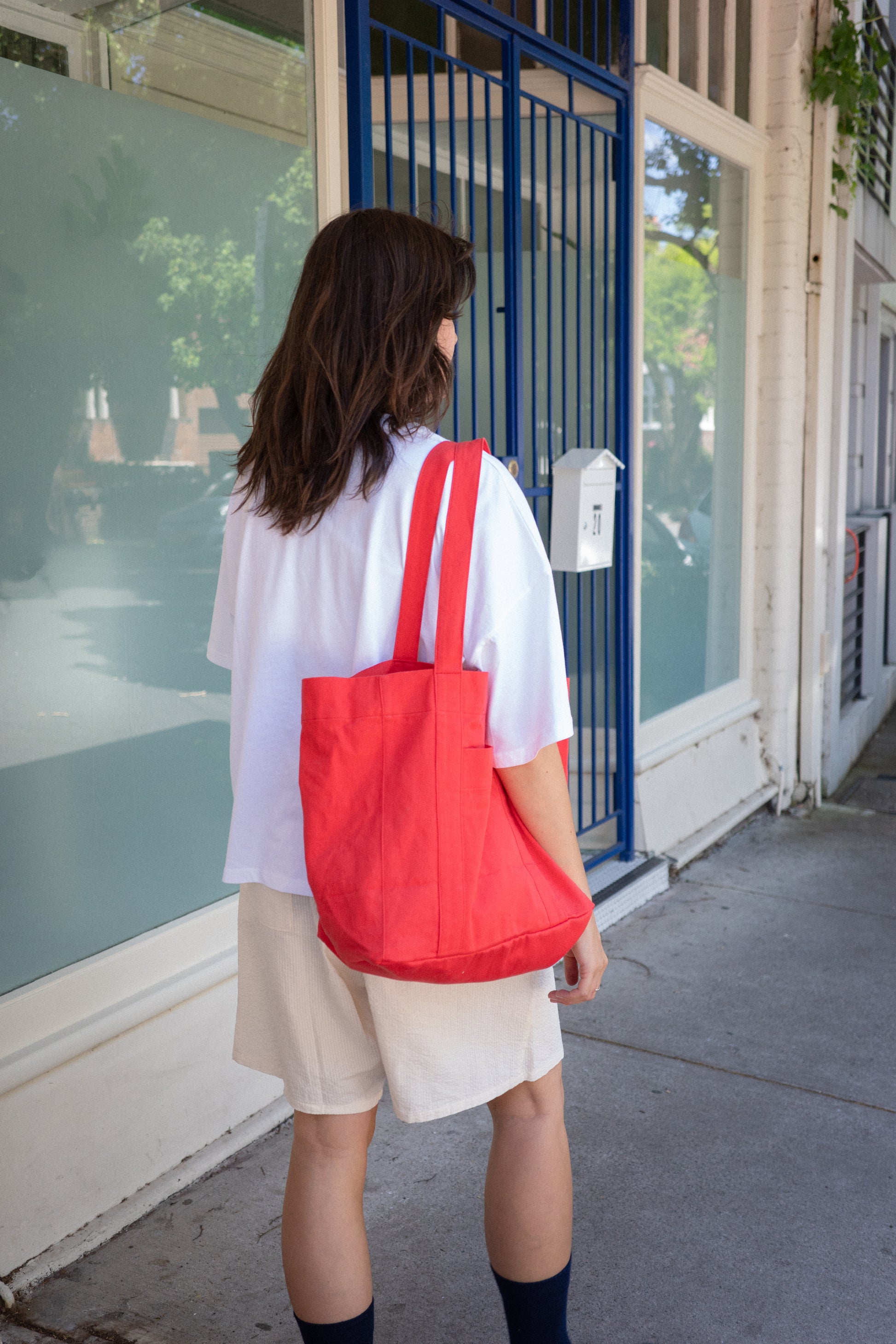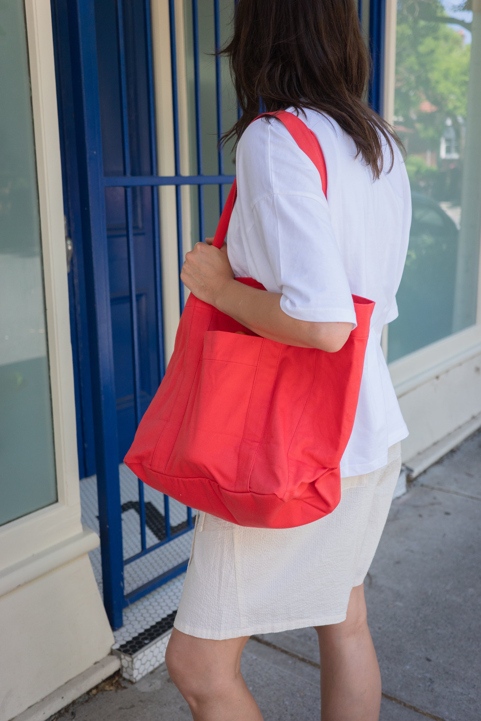 Featuring a multi layered fused base and inside loop for door hooks or Always Pouch.