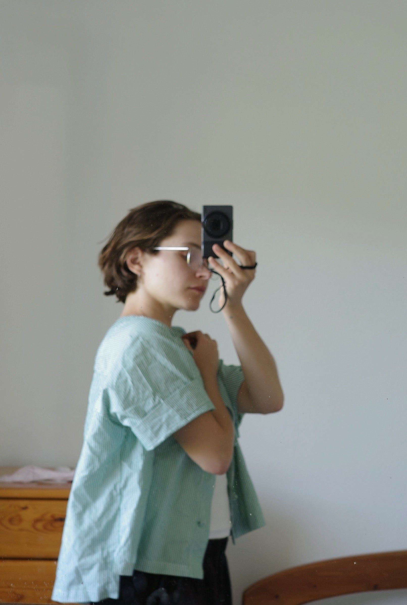 Body Width – AA: 135cm, A: 140cm, B: 145cmFind out more sizing information here.BTSFirst created in 2017, The Poet Shirt has been made in countless fabrics, sleeve and hem lengths and shapes, and collar styles. After three years of sampling, fitting on multiple body’s, and thinking, the photographed edition is remarkably similar to it’s original.Originally named the O.S Shirt (Over Sized), sometimes just referred to as ‘The Shirt’ with friends, I finally landed on the ‘Poet’ while listening to Patti Smith read Just Kids as I sewed. It feels right to name it after her, I think it’s something she would like.