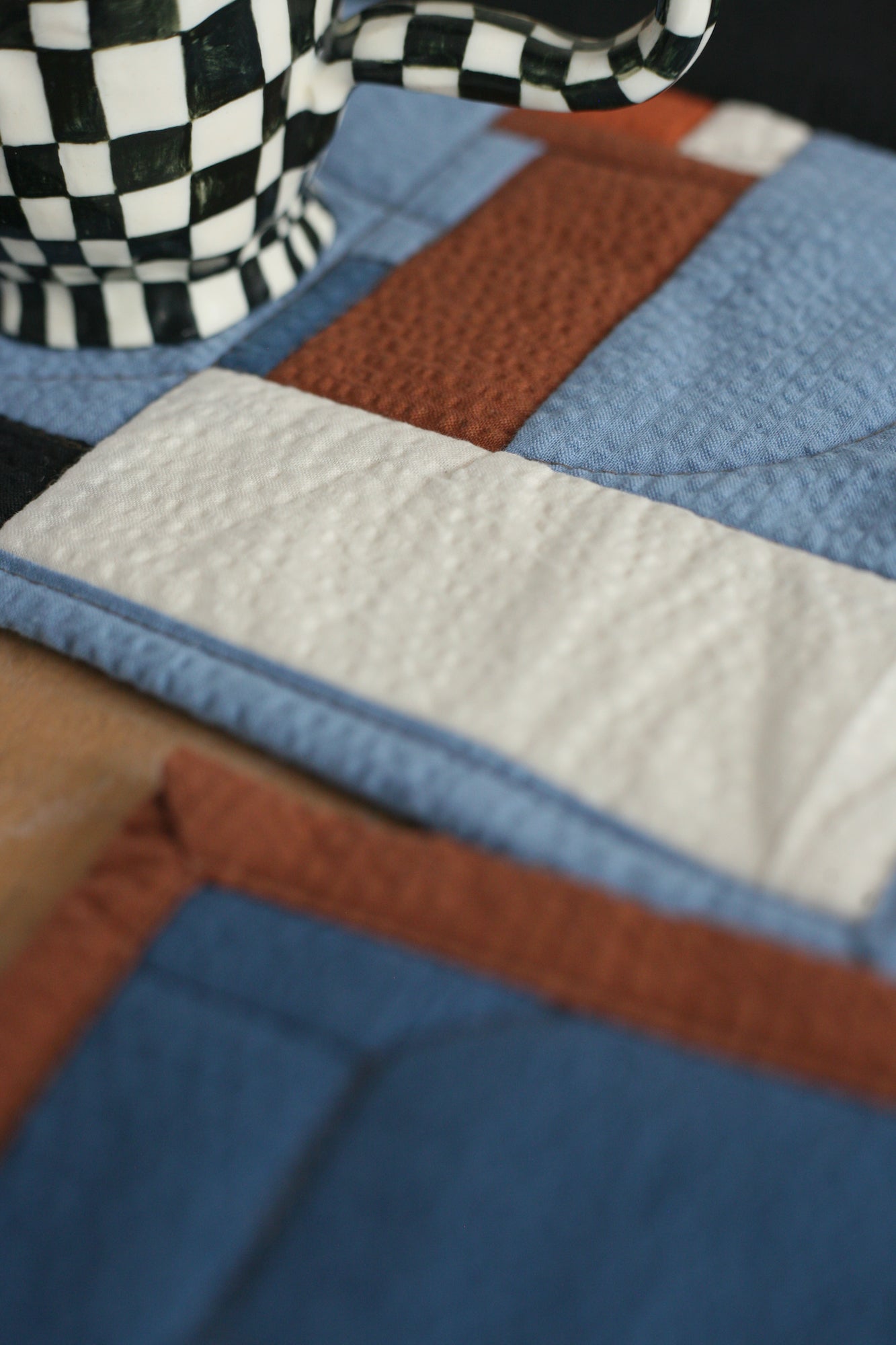 Each piece sold separately. Current batch of 4 coasters include LIMIT and Archive Cotton Seersucker in compositions of Periwinkle, Ocean, Cinnamon, Tangerine, Cream, and Black. Orders chosen via lucky dip surprise.