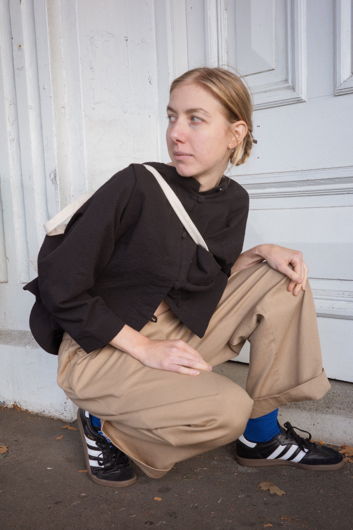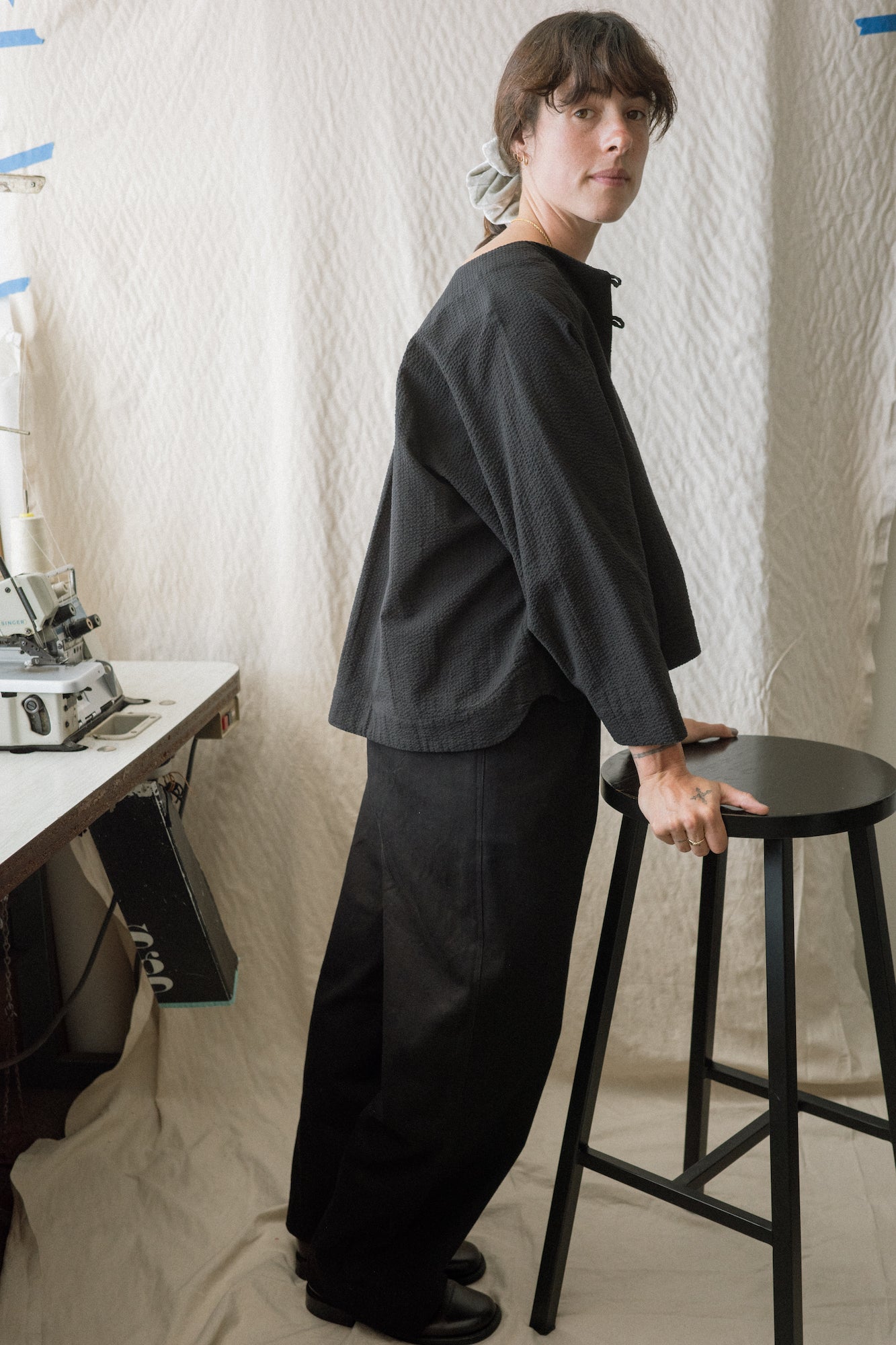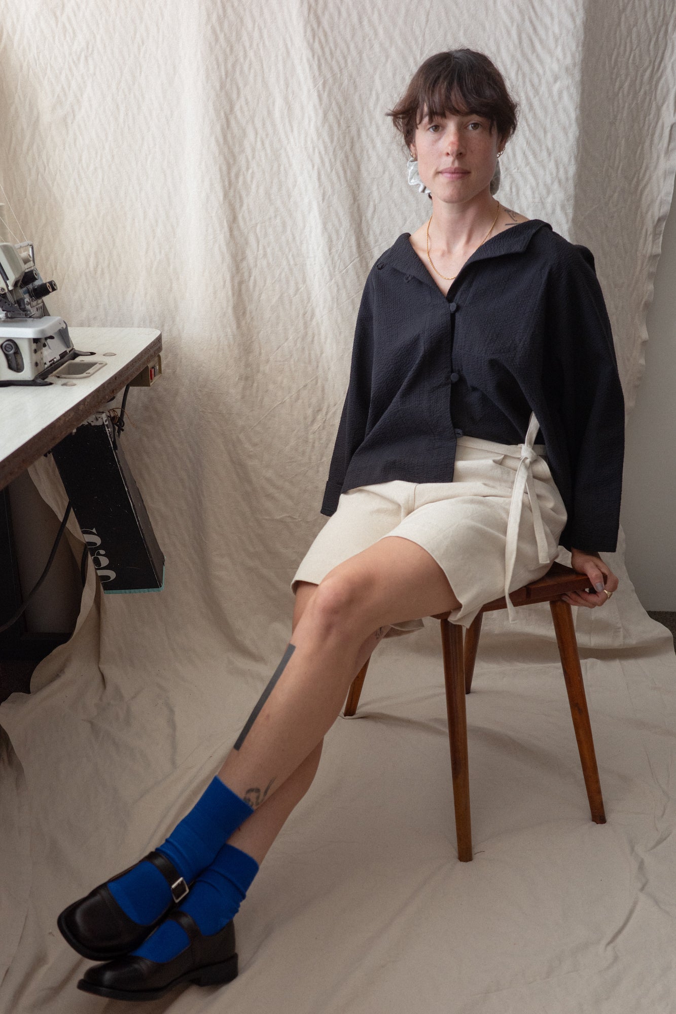 First created in 2017, The Poet Shirt has been made in countless fabrics, sleeve and hem lengths and shapes, and collar styles. After three years of sampling, fitting on multiple body’s, and thinking, the photographed edition is remarkably similar to it’s original. First named the O.S Shirt (Over Sized), I finally landed on the ‘Poet’ while listening to Patti Smith read Just Kids as I sewed. It feels right to name it after her, I think it’s something she would like.